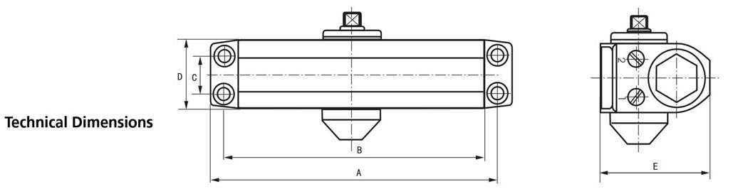 | A. Length of Closer Body | 9-3/4″ (248 mm) | D. Closer Body Height | 1-13/16″ (46 mm) |